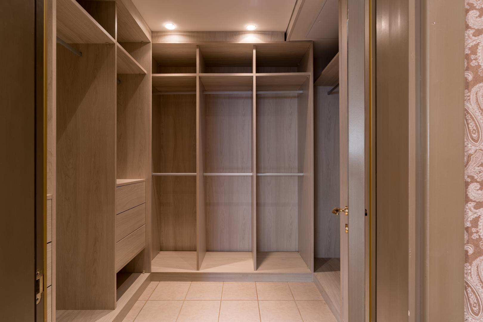 Зал гостиная, кухня-столовая, 2 с/у, 2 гардеробные, кладовая, места для хранения.